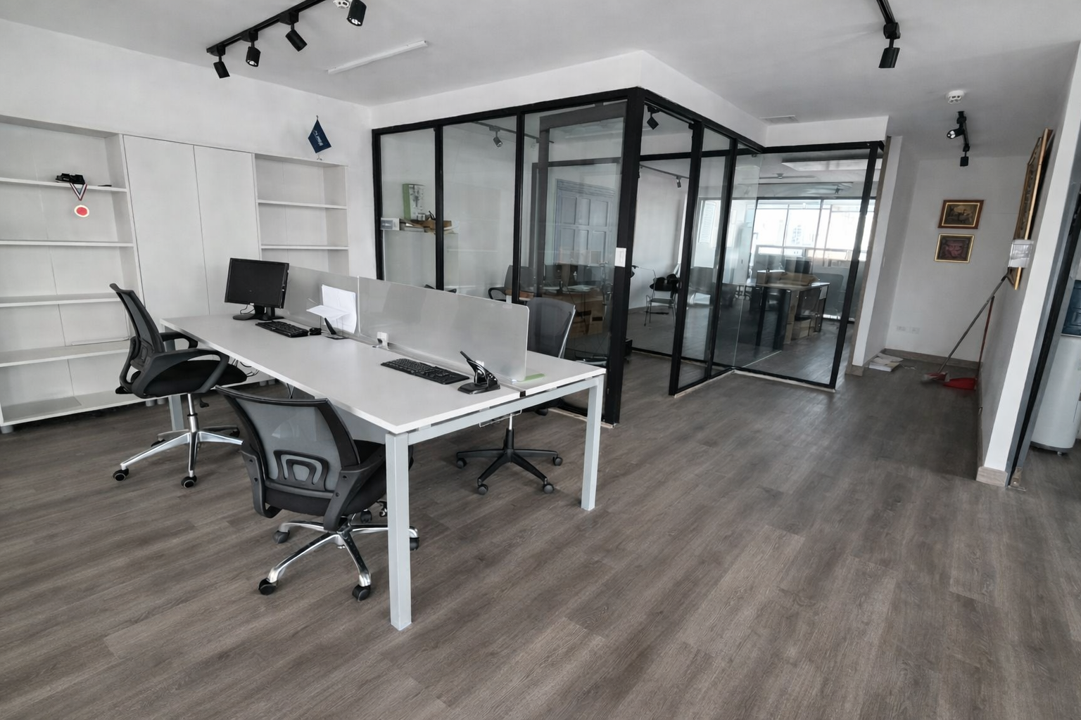 • Distribución funcional con recepción, estaciones de trabajo, áreas abiertas y cerradas, sala de reuniones y cocina.