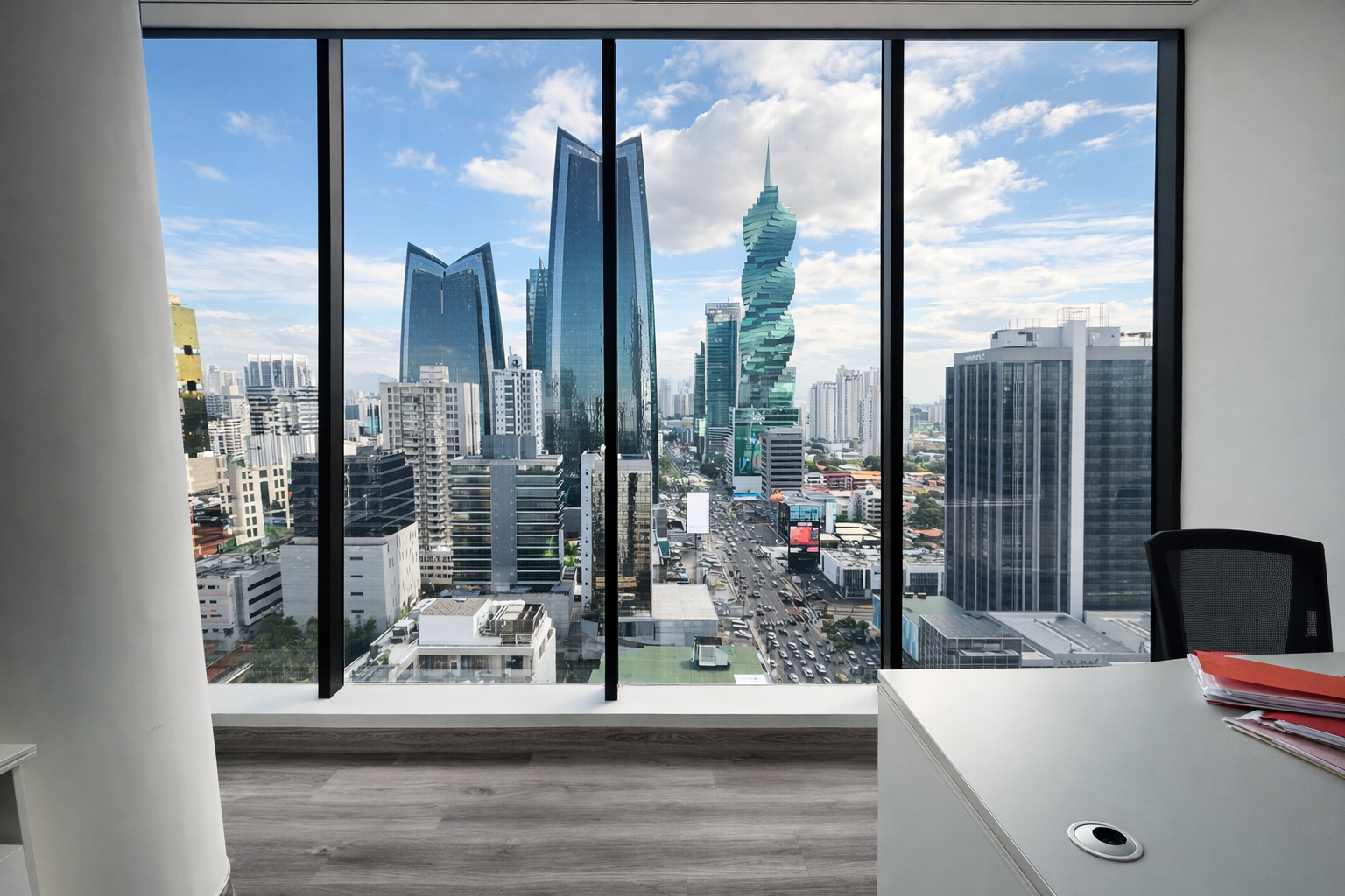 Oficina en el Edificio Global Plaza, ubicada sobre Calle 50, una de las avenidas comerciales y financieras más importantes de la ciudad.