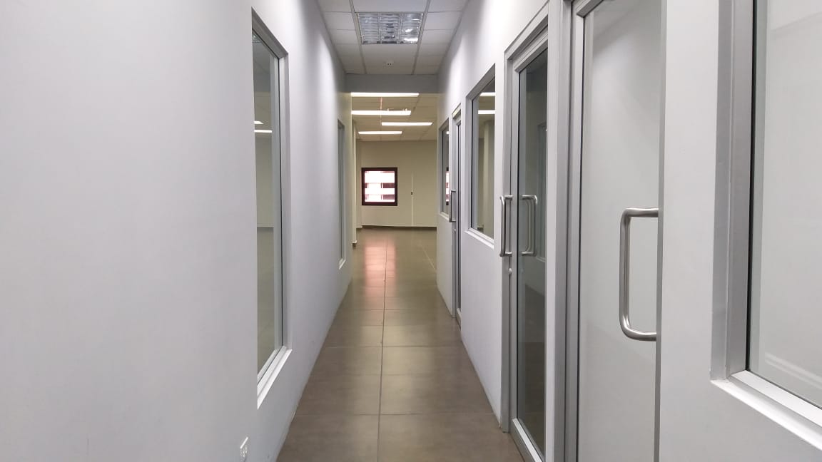 Espacio de oficina de 475 m2, cuenta con recepción, un área de comedor, salón de reuniones, 2 baños y otras divisiones (no incluye mobiliarios).