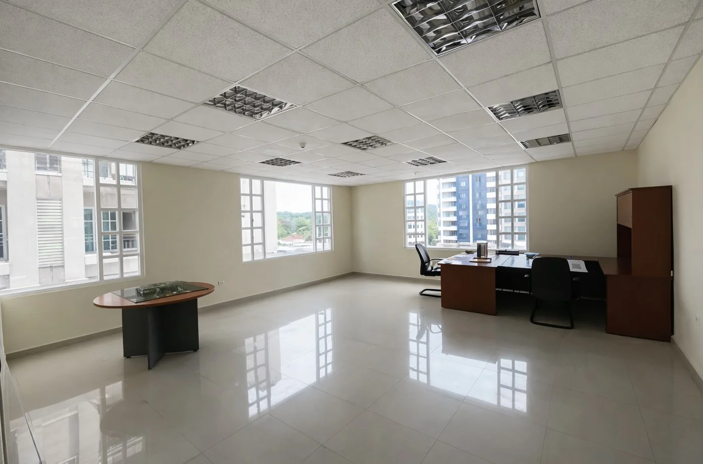 • The office is in good condition, distributed in reception area, private offices of different sizes, conference rooms, cafeteria, bathrooms, among others.